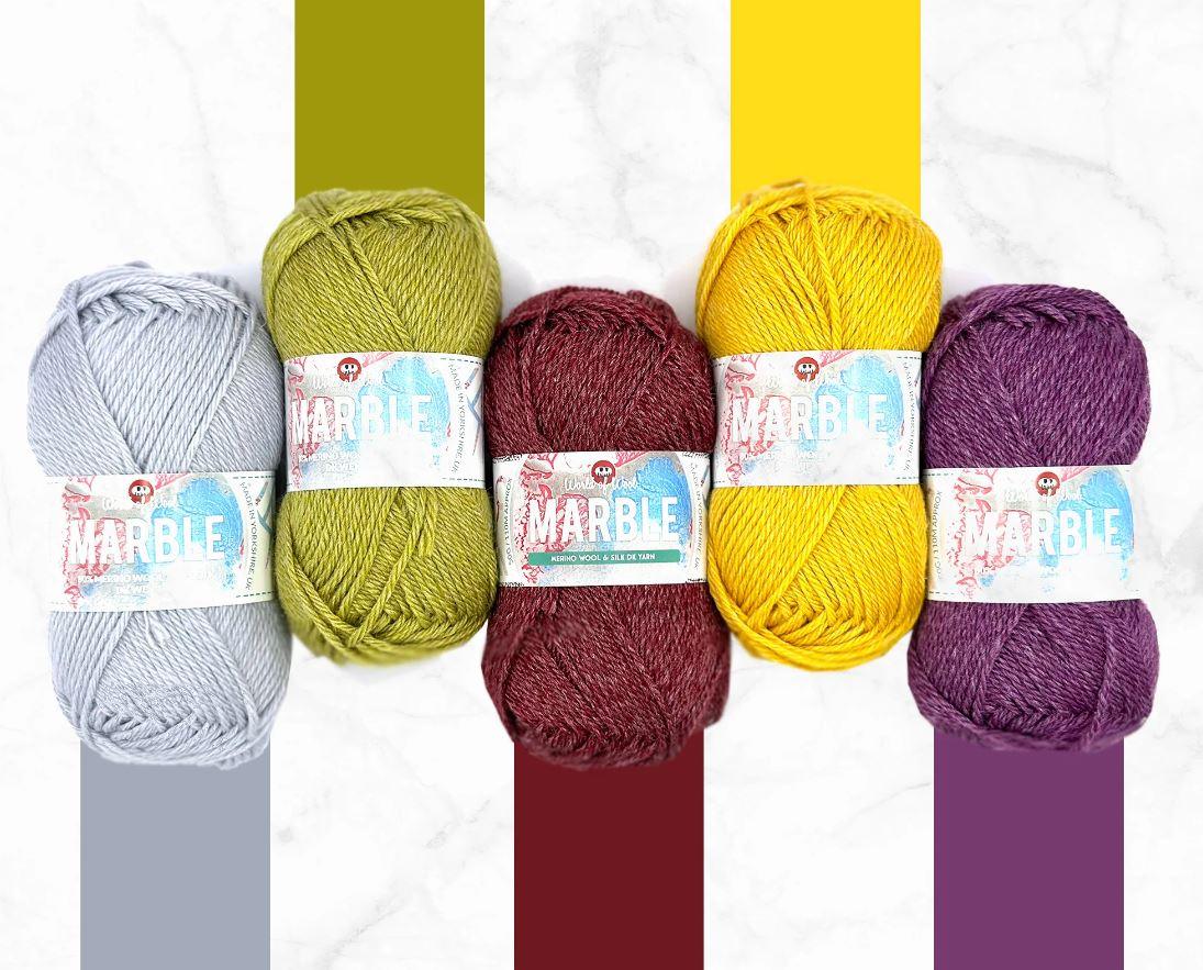 With a huge range of colours to choose from, it took us quite a while to narrow down the core shades for Marble. We wanted tones that could be used across a variety of projects; whether it was knitting traditional jumpers that may require more neutral colours or something with a bit of vibrancy and zing. Eventually we settle on the 16 shades that you see today.