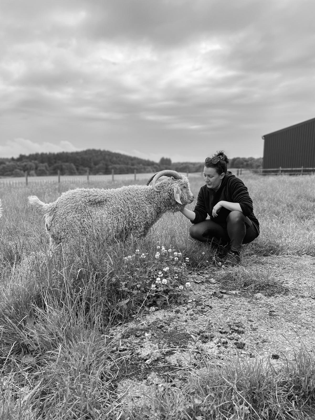 "Annfield Farm started from Laury-Anne’s love for Angora Goats and Andrew's wish to continue the family farm. It all began in 2020 and we welcomed our first kids (baby goats) in spring 2021. We have been growing ever since and now have 46 goats. We only keep goats for their fibre and work entirely without slaughter. Angora goats live 10 to 12 years and once they stop breeding (around 8 years old) they simply live the rest of their natural lives at the farm. We also keep all the castrated males as they actually give the best and finest fibre.