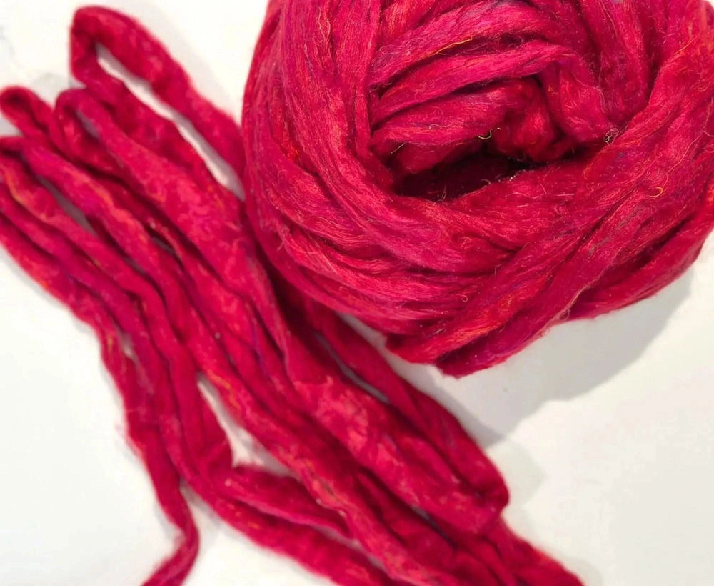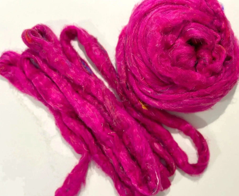 Bright and bold recycled silk; no two batches are the same. We love using this to add shocks of colour!