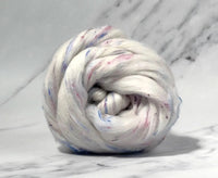 A creamy base of Polwarth Wool infused with fruity colours of viscose nepps. Ideal for most fibre crafts including spinning, felting, weaving & more.
