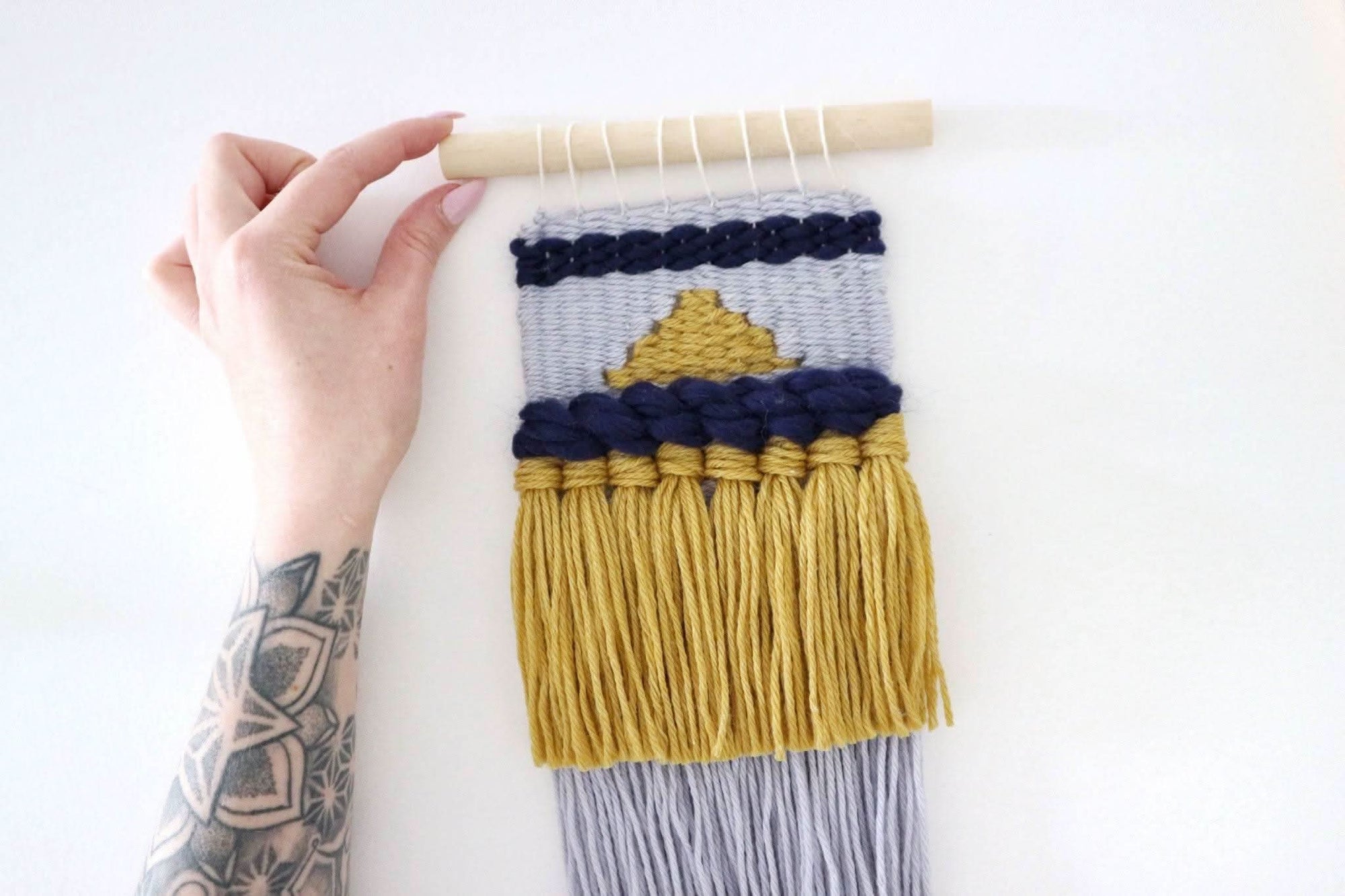 The kit includes everything you need to create a Handwoven Wall Hanging, including a wooden loom and easy to follow tutorial by Phoebe Hammond from Made Weave Love.
