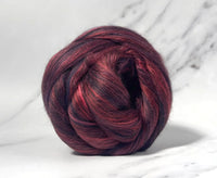 A incredibly rich blend of Blue Faced Leicester Wool & Mulberry Silk. Bold silk against super soft BFL wool creates depth and texture. Sublime.