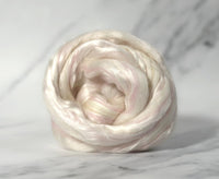 But we couldn’t stop there. For just a touch of unexpected luxury (because or advent blends deserve a little elegance), we added a whisper of camel fibre for warmth and softness, and a hint of mulberry silk to give the whole blend a subtle sheen, like the glisten on a freshly unwrapped sweet. The final blend is light, soft, and full of depth, perfect for spinning or