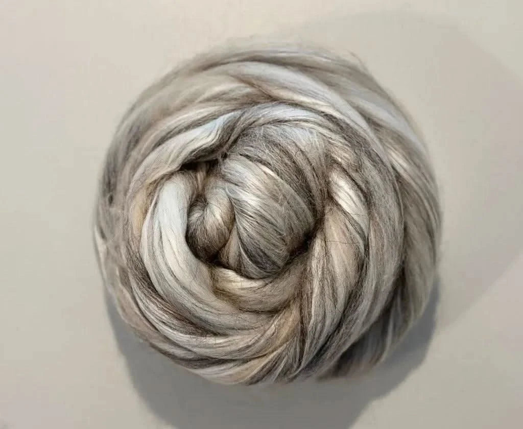 An extremely soft blend of UK Alpaca, Mulberry Silk, Camel & Superfine Merino. Simply a dream to spin; you won't want to put it down!
